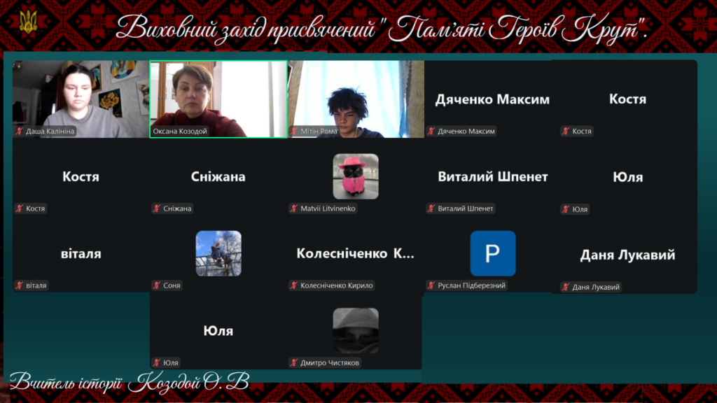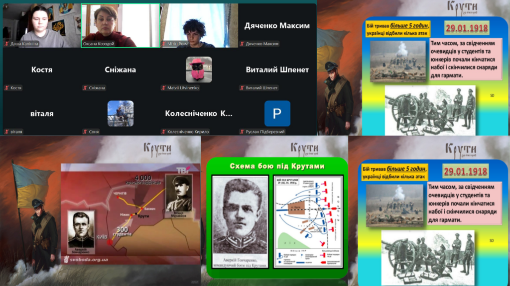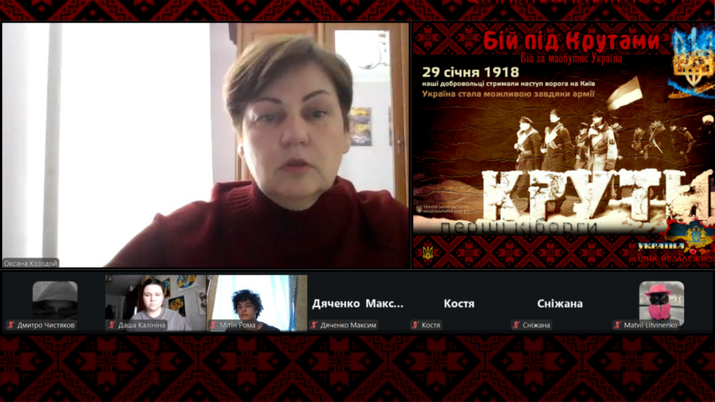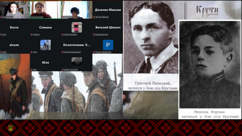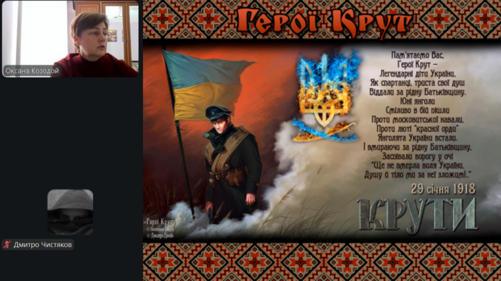 У Львівському ліцеї відбулася знакова подія — онлайн-захід для учнів 7-11 класів, присвячений Дню пам’яті Героїв Крут. Організатором зустрічі виступила вчитель історії та правознавства #Козодой_О.В.