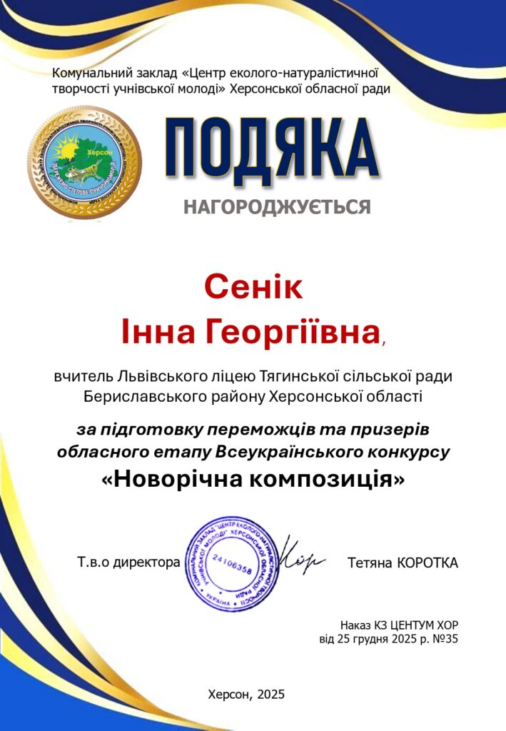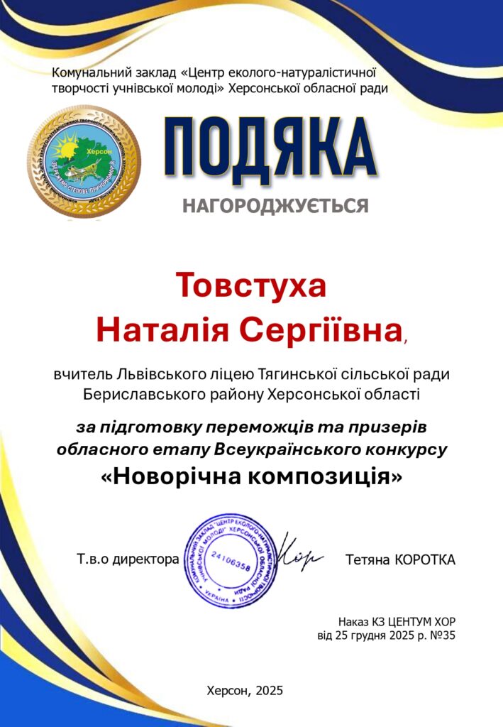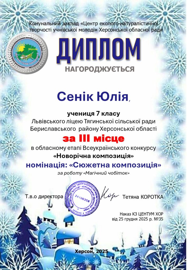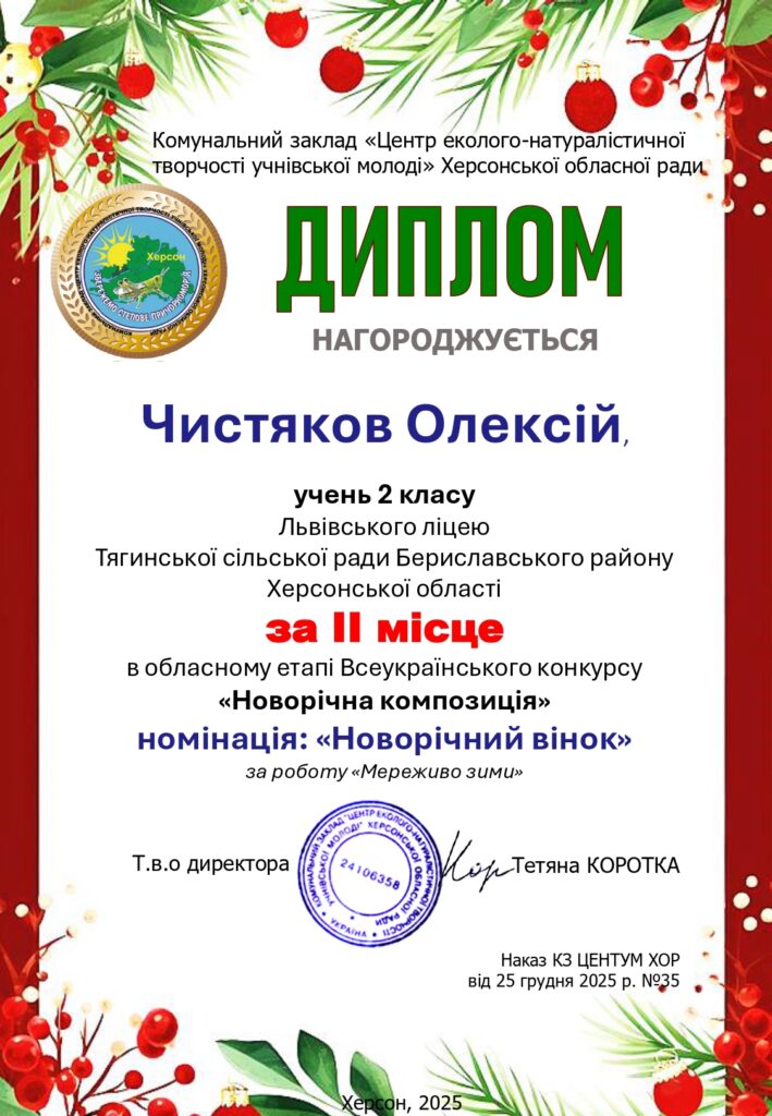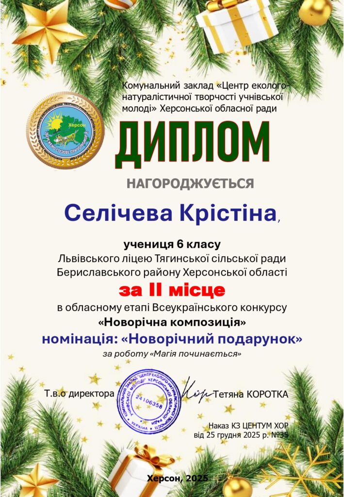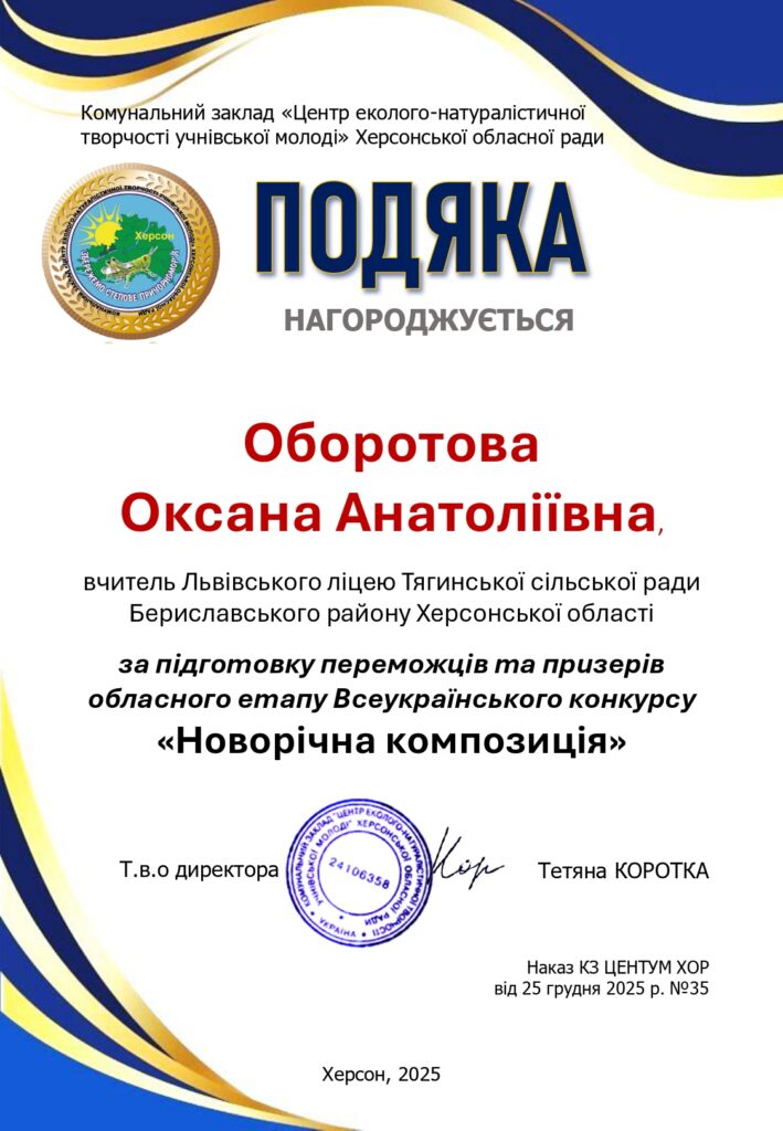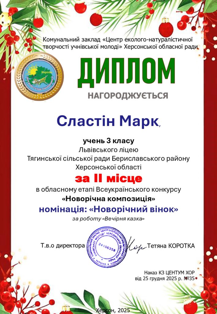 Чудові новини: дипломи та подяки за участь в обласному етапі Всеукраїнського конкурсу «Новорічна композиція» вже отримано!